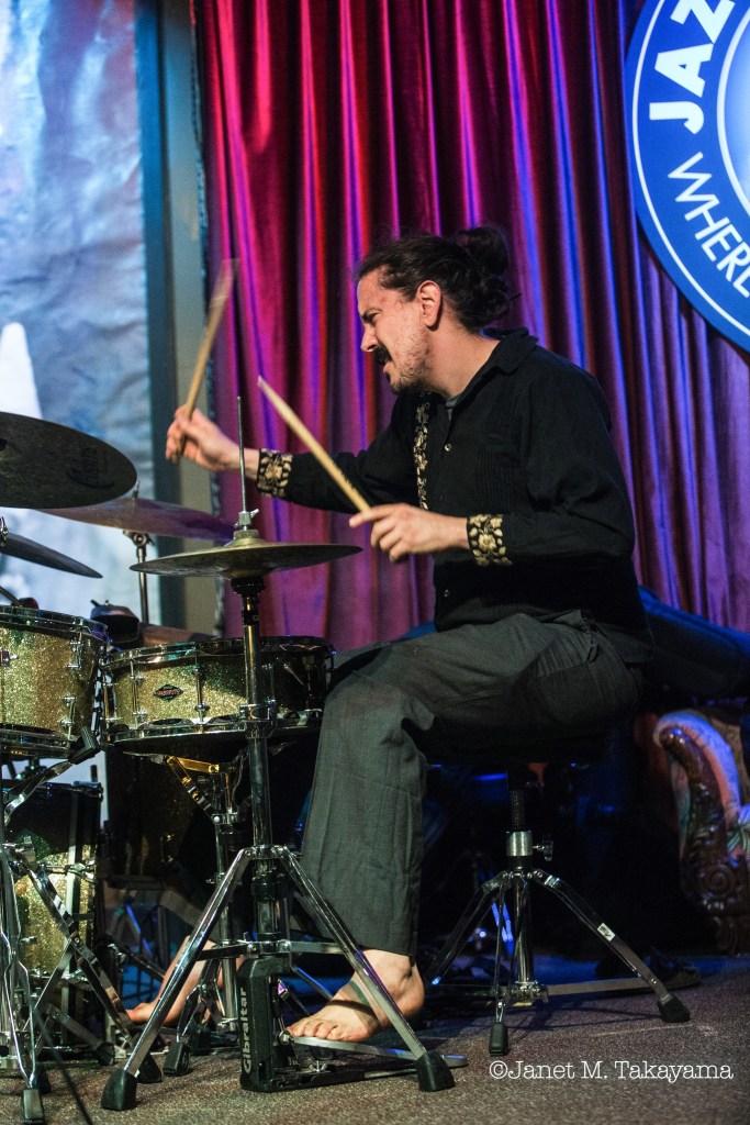 Drummer, composer, and entrepreneur Gustavo Cortiñas has become one of the most intriguing and prolific forces on the Chicago musical scene. The last year saw the release of two powerful and contrasting recordings which have garnered grants, rave reviews, and much interest in Chicago, nationally, and internationally. Born in Mexico and educated in New Orleans and Chicago, Cortiñas’s music displays his desire to pull together the threads of his history and passions: Latin American folklore, jazz and classical music, philosophy, religion, and the Latin American cry for justice—as he translates the title of his double-album, Desafío Candente, or “incandescent act of defiance,” which has also become the name of his newly-formed record label with pianist and composer Javier Red. That record, with 30 collaborators from 10 different countries, does no less than attempt a traversal of the entire history of Latin America, using as its basis the Uruguayan historian Eduardo Galeano’s famous book, The Open Veins of Latin America. His most recent release, Kind Regards/Saludos Afectuosos, is an intimate collection of 10 songs by a splendid quintet (piano/voice, bass, guitar, trumpet, and drums), five each in Spanish and English, narrating scenes of modern alienation and connection across borders.